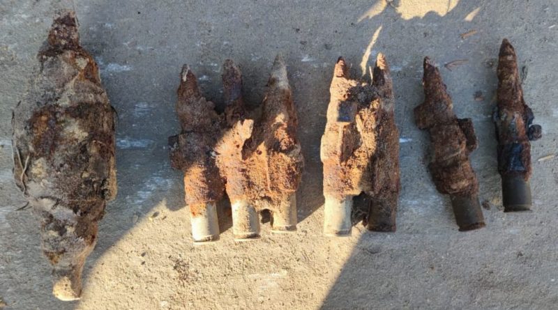 Podczas prac koparką, wykopano 7 pocisków artyleryjskich. Do czasu przyjazdu patrolu saperskiego miejsce znalezienia niebezpiecznych przedmiotów zabezpieczali policjanci. Kilka sztuk